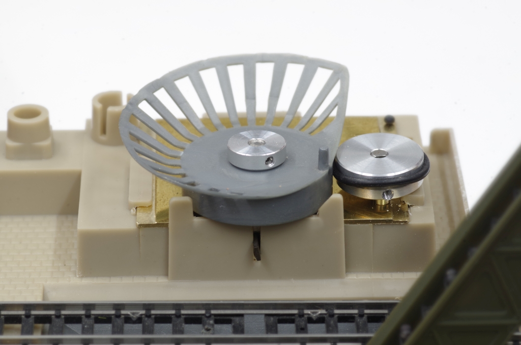 Um das ganze zu montieren am besten wie folgt verfahren : die Messingplatte mit dem eingenieteten Stift in den Sockel der Fabrikanlage einschieben. Dann die Löcher 1,6mm und 4,1mm durch die Messingplatte in den Sockel bohren. Jetzt kann von der Unterseite des Sockels der Motor eingesetzt und mit 2 M1,6 Schrauben befestigt werden.