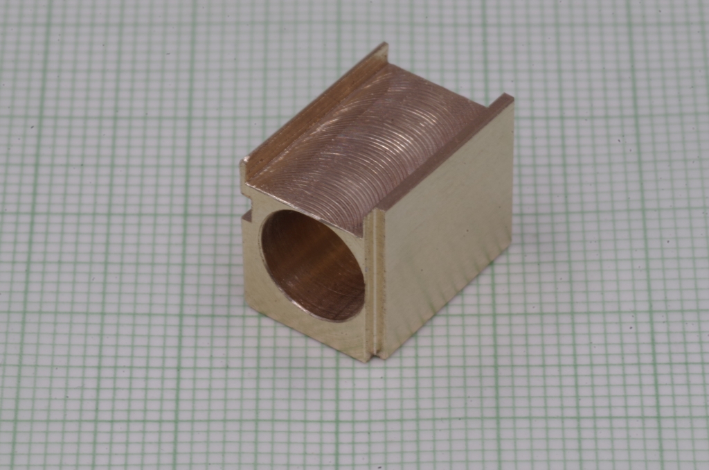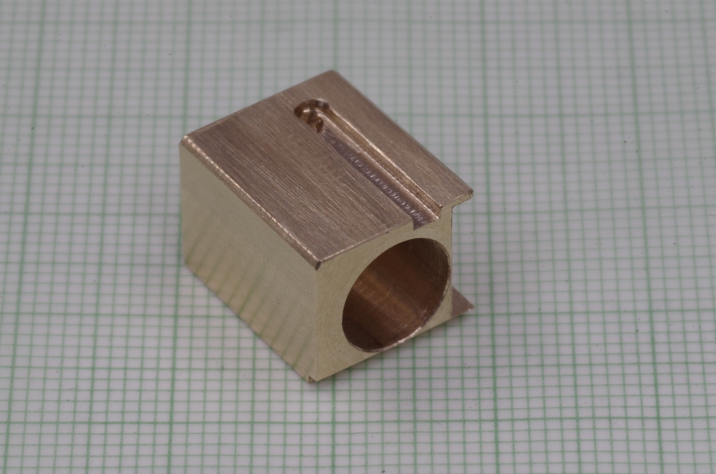 Vorne an der Unterseite ist noch eine Stufe eingefräst, damit die Radschleifer des letzten Kuppelradsatzes nicht an das Messing stoßen.