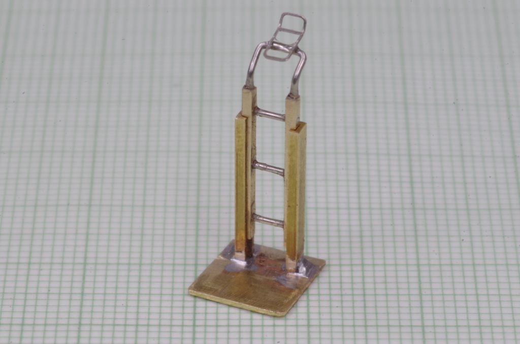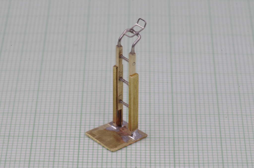 In die Löcher der Strinseite kommt ein U-förmiger Neusilberdraht an dem ein übrig gebliebenes Ätzteil geklebt wird.