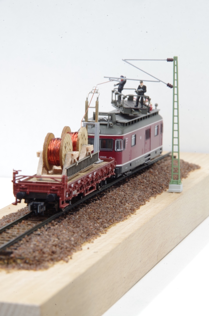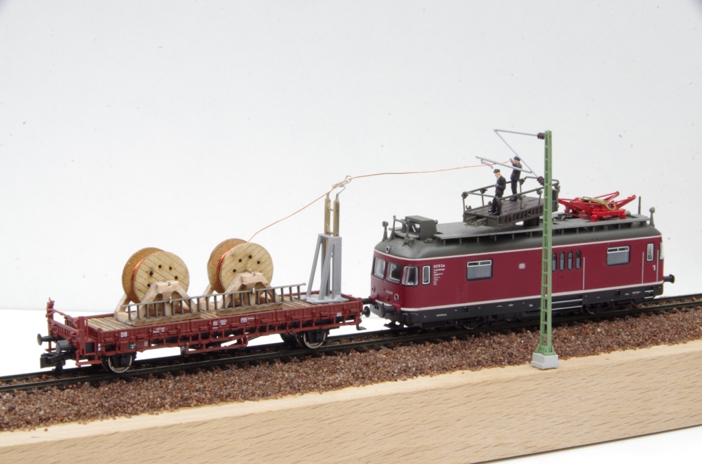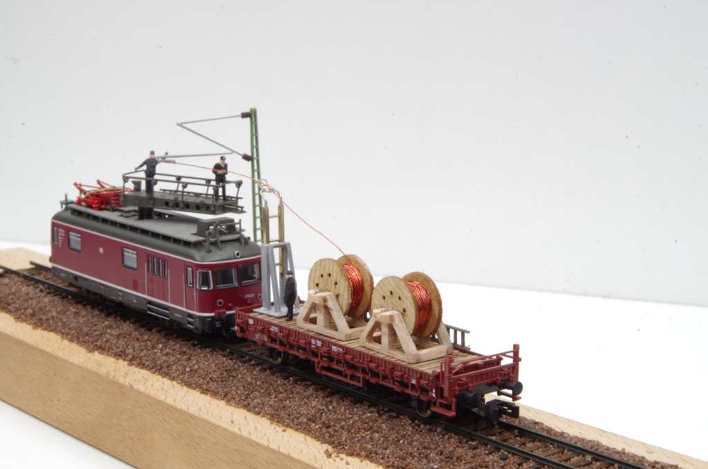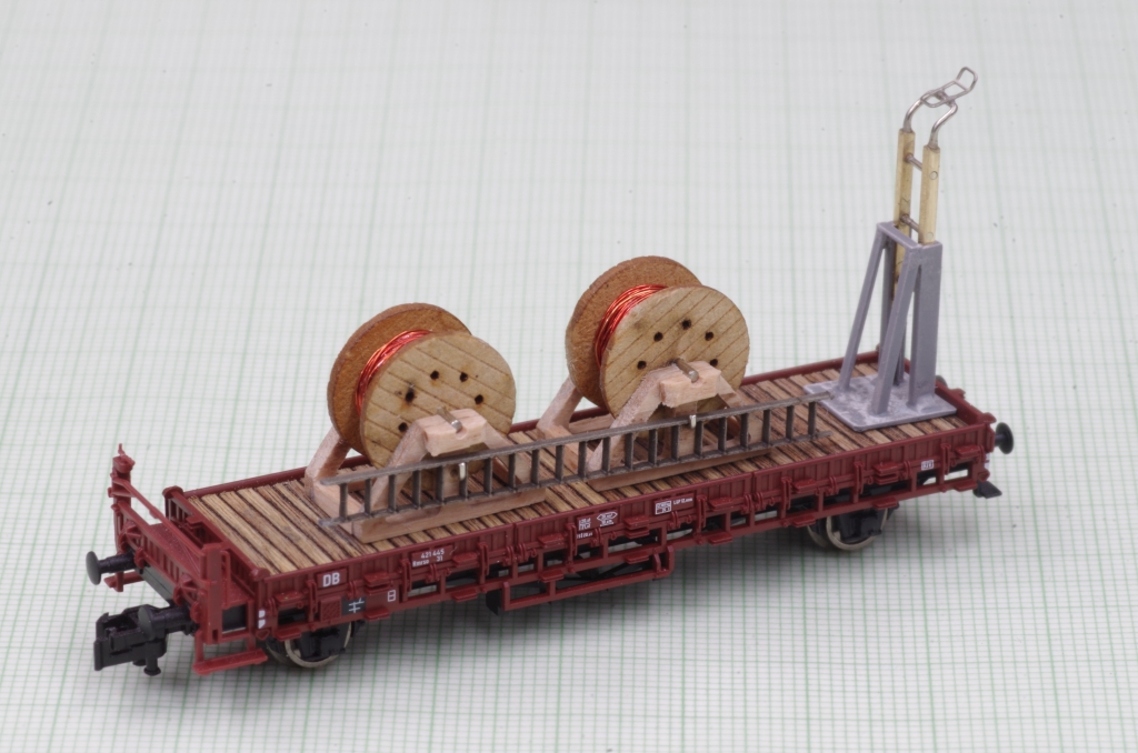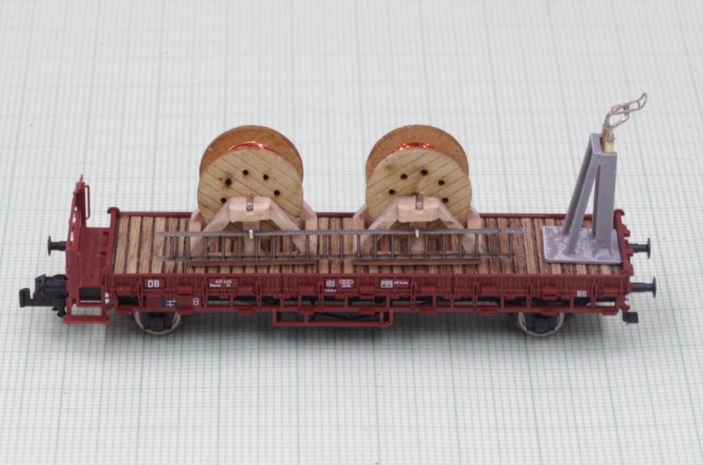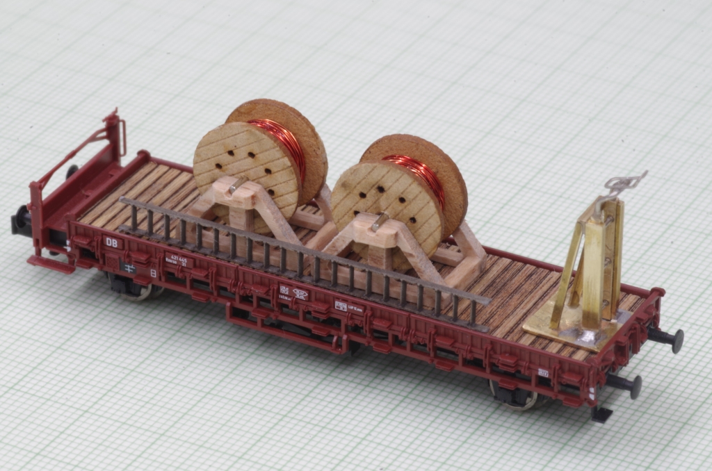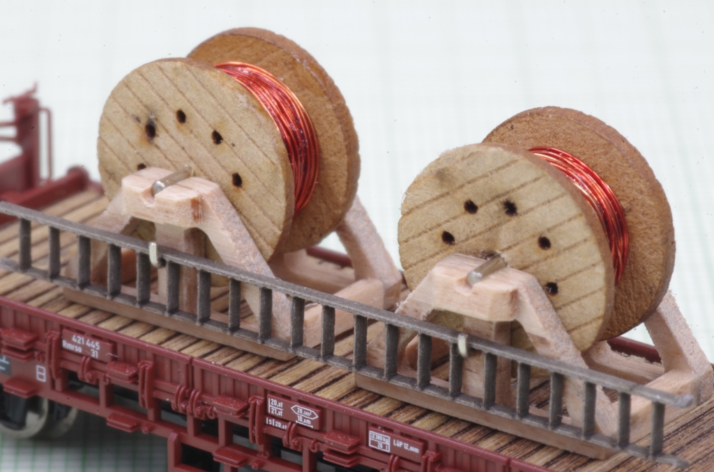 Die Kabeltrommeln sind von DM-Toys (13mm Durchmesser), ich habe sie dann mit Kupferlackdraht bestückt.
