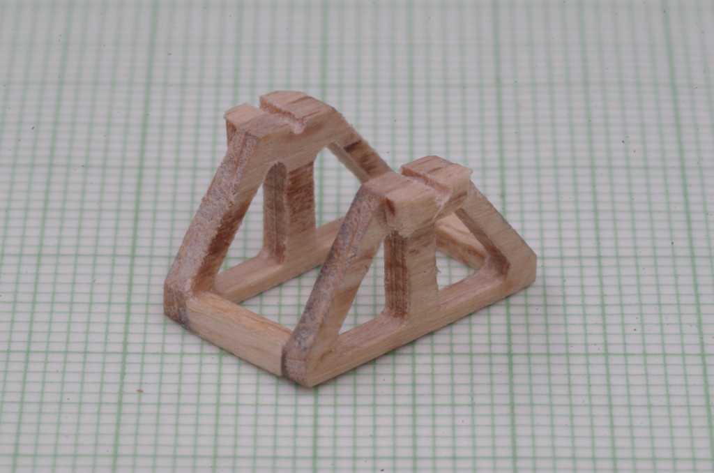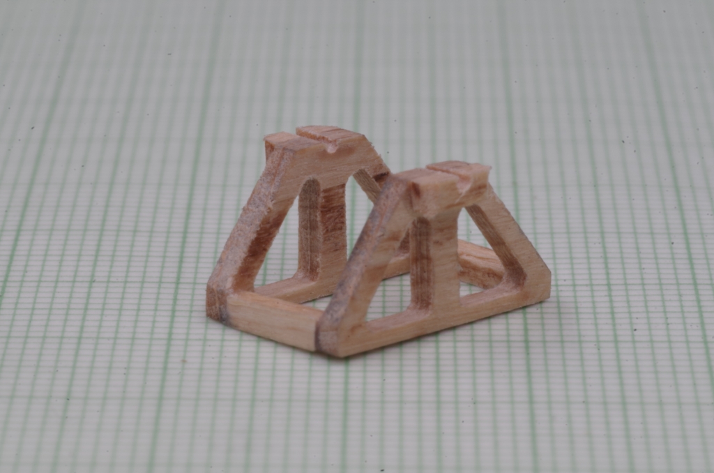 Das ganze dann vier mal und mit Querstücken zusammengeklebt. Wo die Trommelachse aufliegt, habe ich noch eine Verstärkung angeklebt.