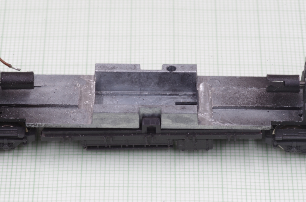 Da genug Platz im Triebwagen vorhanden ist, habe ich mal einen Pufferspeicher (Puff-N von FichtelBahn) eingebaut. Dafür muß etwas Material weggefräst werden.