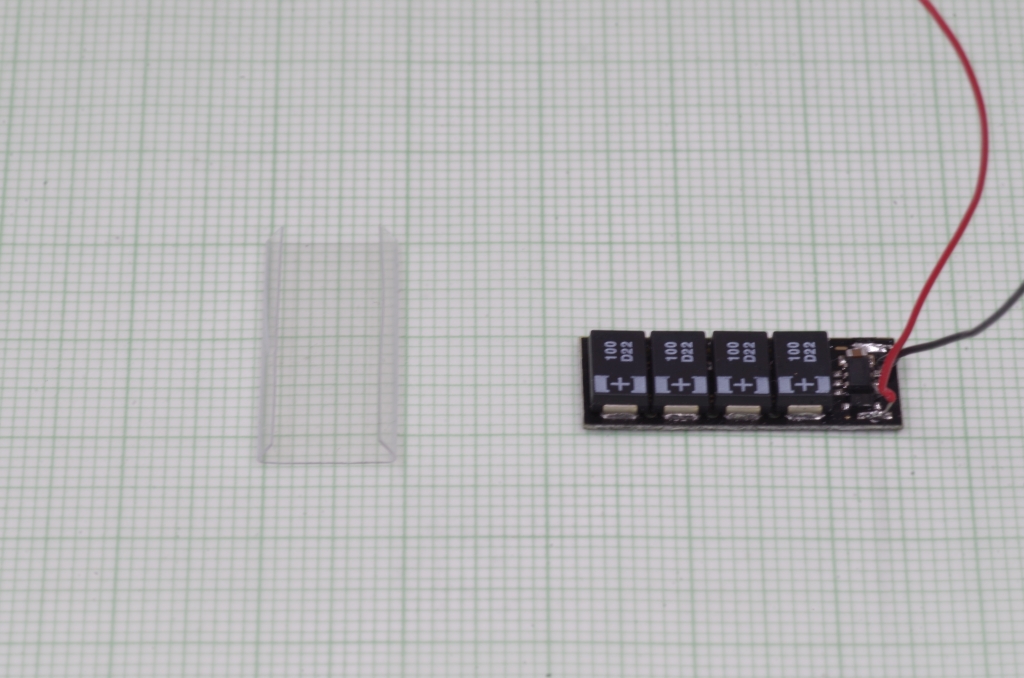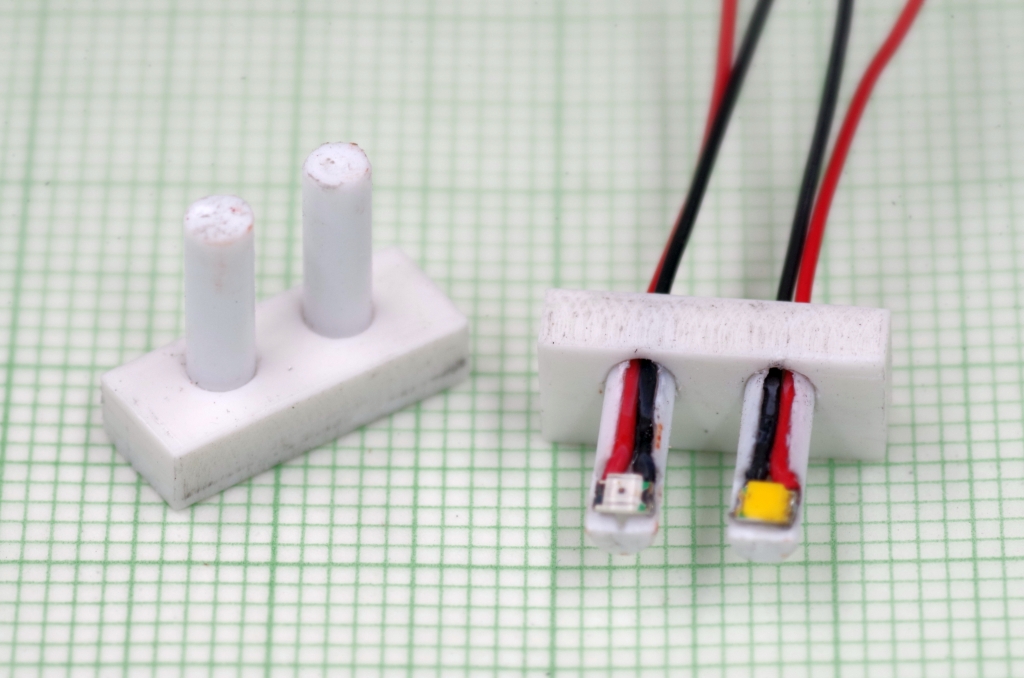 Für die Beleuchtung mit LEDs wird ein Halter aus Kunststoffprofilen gemacht, auf dem die LEDs aufgeklebt werden (jeweils eine weiße und eine rote). Das ganze wird dann anstelle